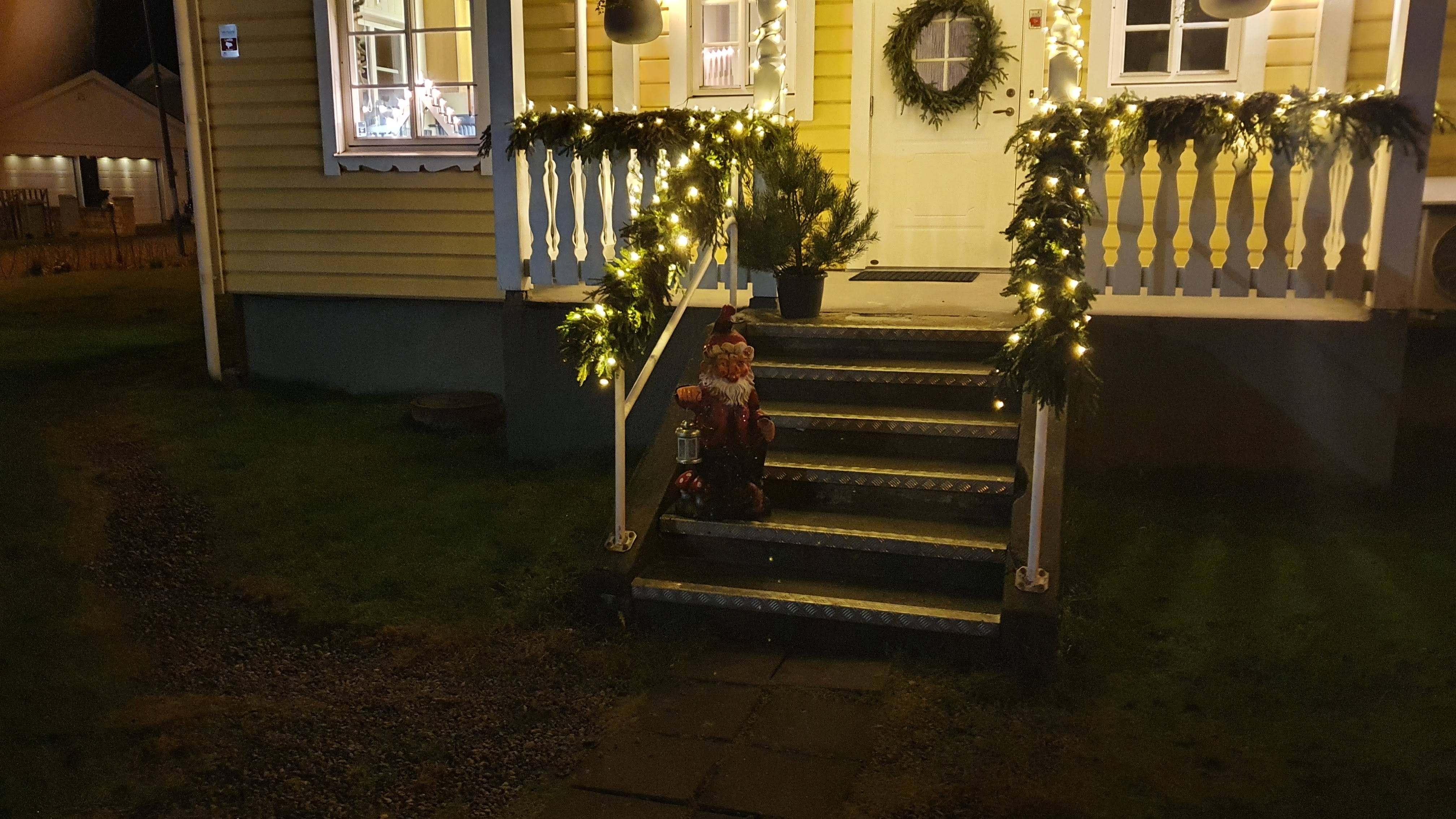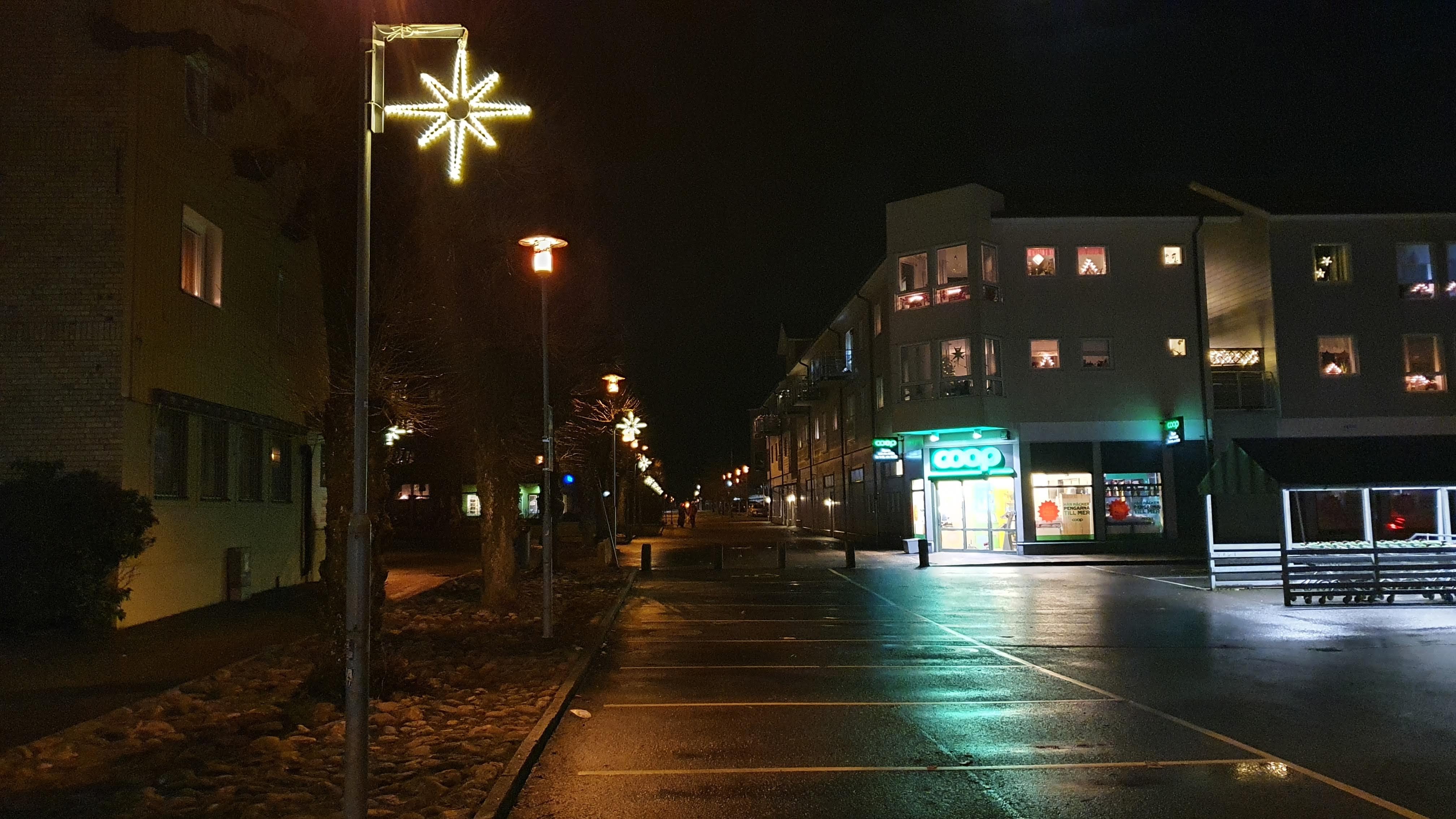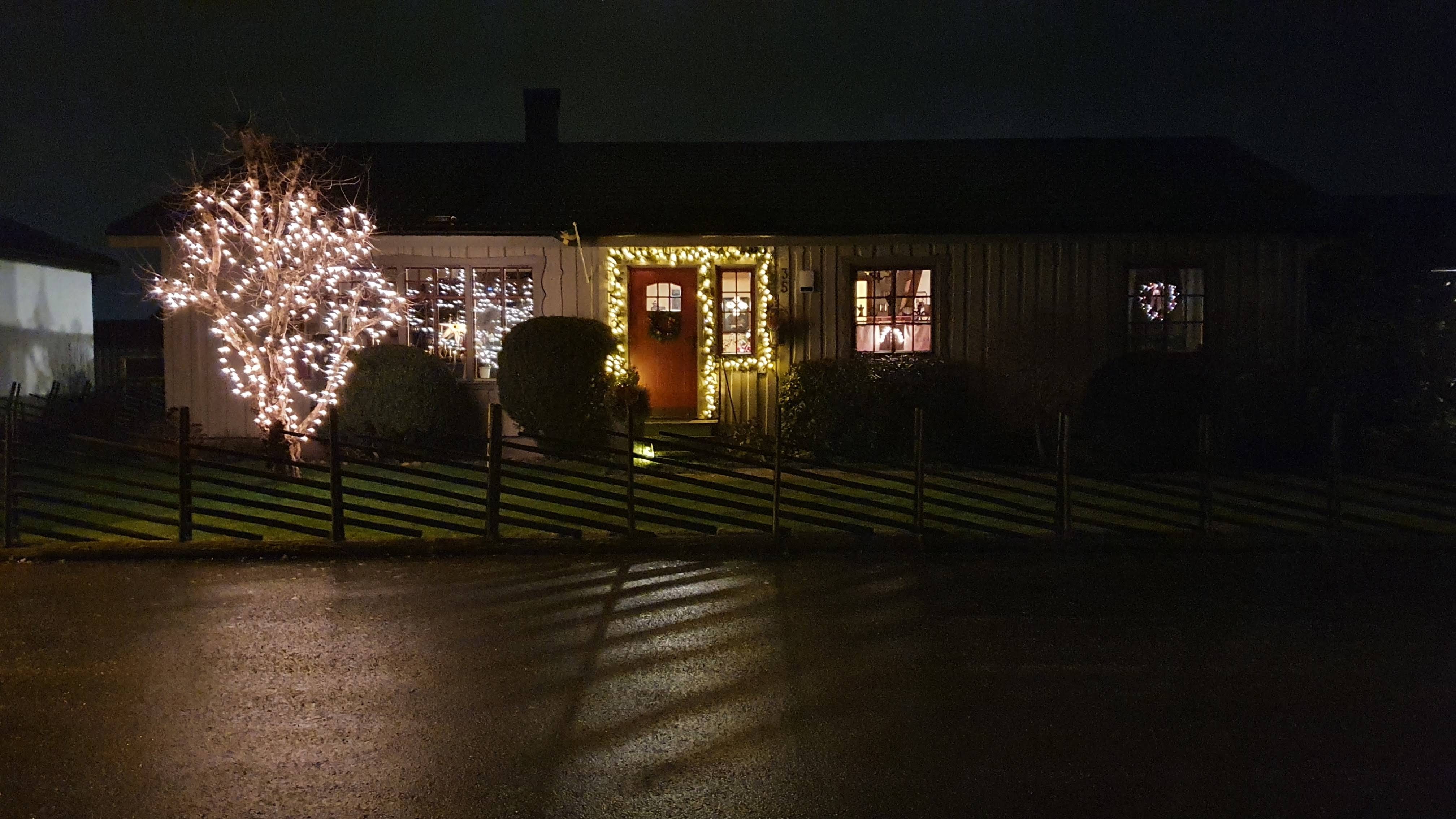 Jag är ju uppvuxen på landet och visst har det varit kul att se de närmaste grannarna julpynta, man har kunnat slänga några ord med dem. Men här promenerar man villagator och små lägenhetshus och kan verkligen se det lilla vara människa gör, för att sprida glädje i mörkrets tid. Att spatsera runt i byn är coronasäkert och njubart.